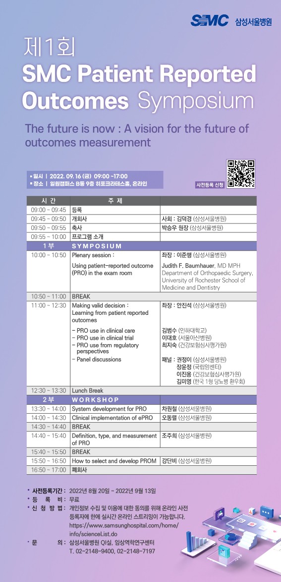 제 1회 SMC PRO(Patient reported outcomes)심포지움 - 학술행사 - 삼성서울병원 (samsunghospital.com)