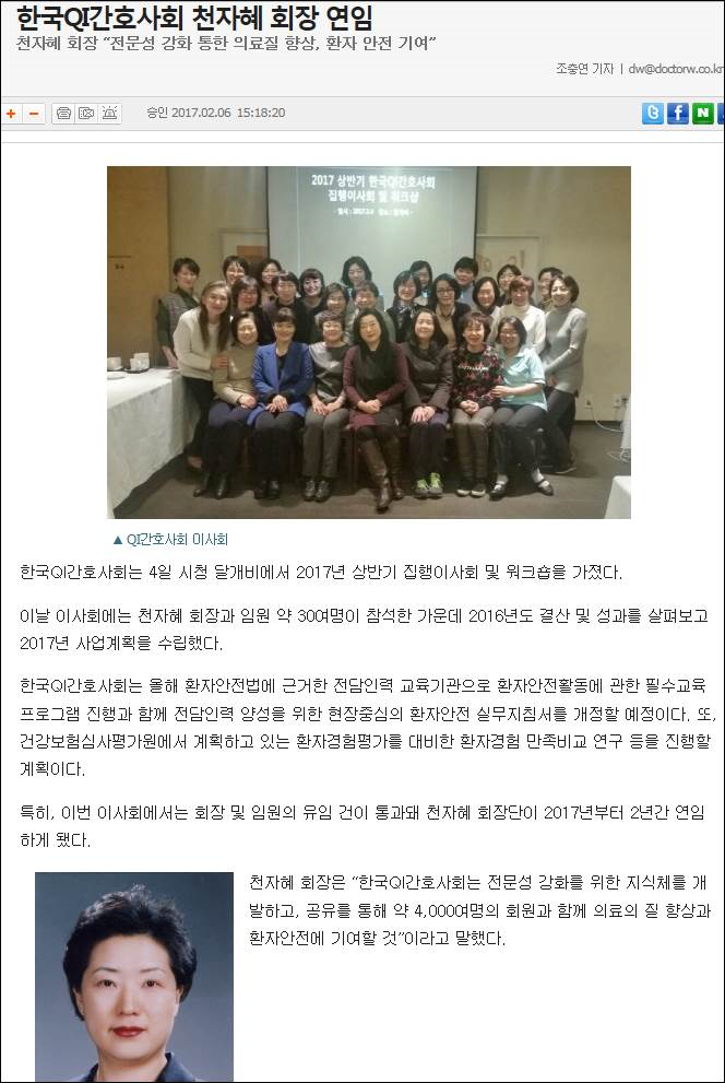 한국QI간호사회 천자혜회장 국가환자안전위원회 위원 위촉