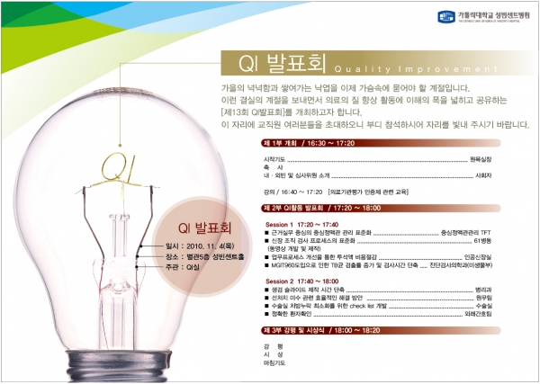 가톨릭대학교 성빈센트 병원 QI 발표회를 안내합니다. 자세한 내용은 첨부파일을 참고 바랍니다.